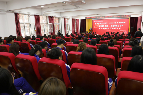 为营造“爱读书、读好书、善读书”的书香校园氛围,纪念中国共产党成立100周年,4月22日,庆祝建党100周年——2021书香吉林阅读季:“书香飘长旅·雅言颂百年”第十届读书月启动仪式在长春大学旅游学院举行。活动由吉林省图书馆指导,吉林省图书馆长春大学旅游学院分馆、党委宣传部、校团委、学生工作处联合举办。党委副书记、纪委书记程越,党委副书记、副校长马维东,副校长贺柏平出席活动,图书馆、学生工作处、团委负责人,各单位党总支书记、直属党支部书记及师生代表160余人参加此次活动。